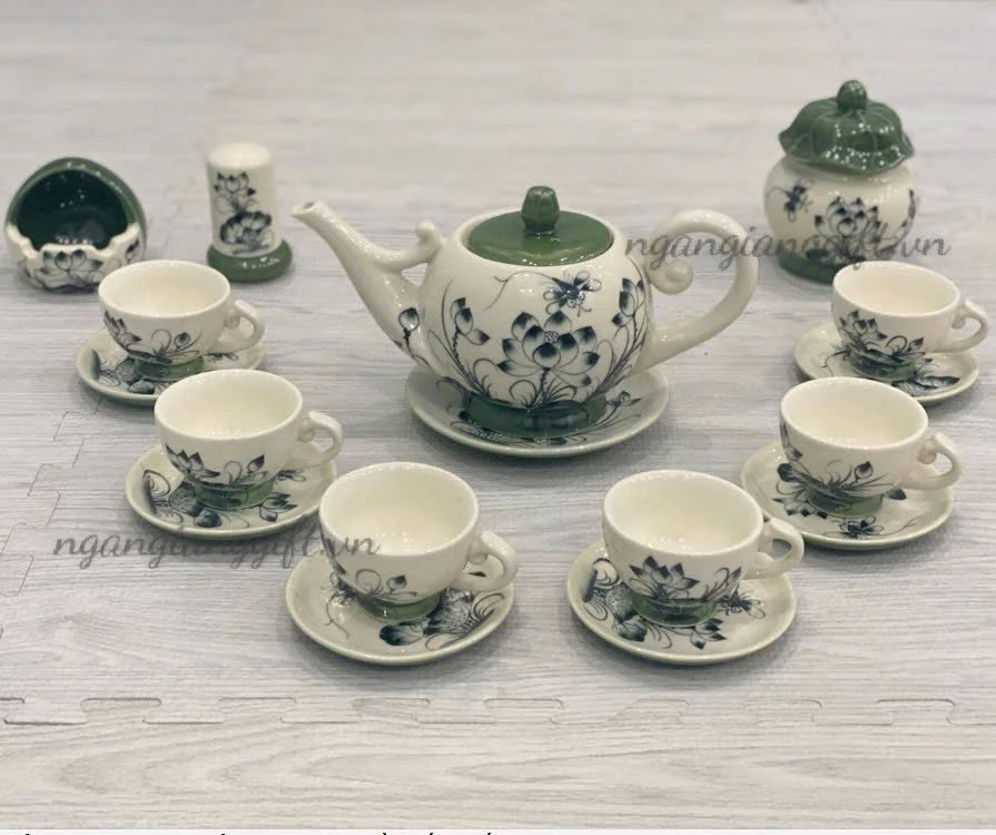 Số món: 1 ấm, 6 chén, 7 đĩa kê, 1 gạt tàn, 1 ống tăm, 1 lọ chè.